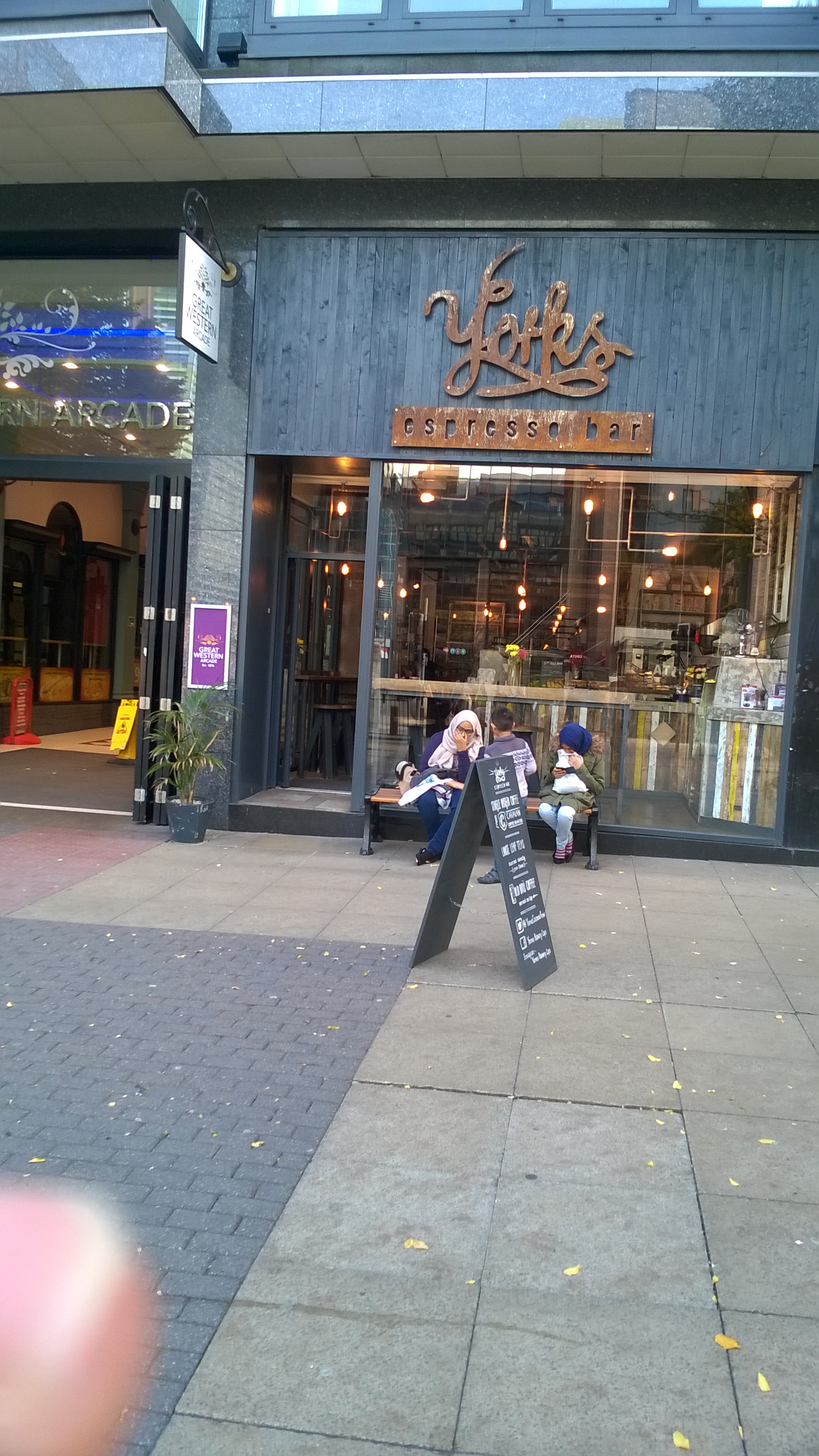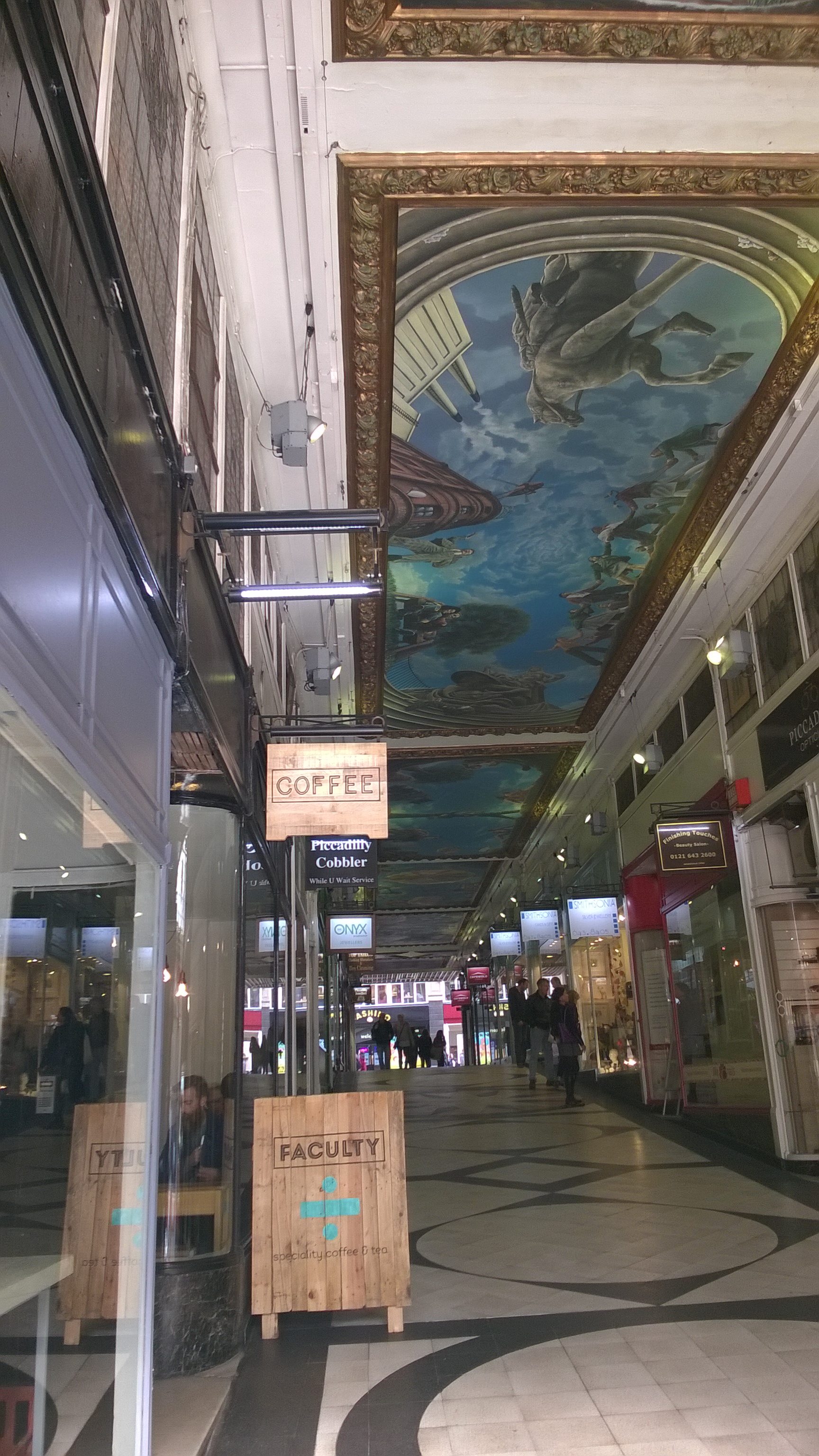 coffee shop at Piccadilly arcade, two spits and a fag end from New Street Station. We had espresso there and my espresso was strong and viscous and well extracted.