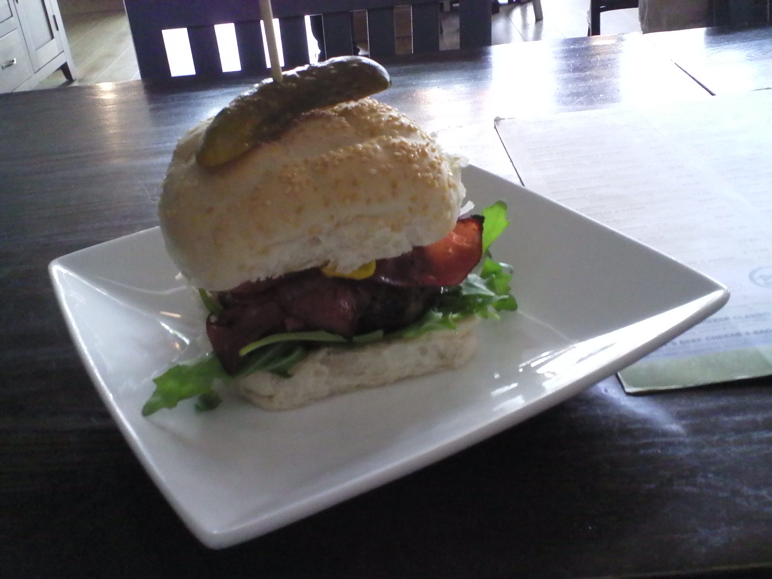 Matt generously invited me to try a burger on the house and I had the New York Deli burger he recommended. It had a thick slab of burger meat plus pickles, pastrami, and gloriously yellow american mustard.