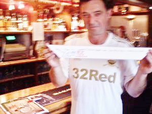 I met Vince at The Victoria Inn, in mumbles. Vince was wearing a Swan’s jersey and had attended the same match that Chris had. Vince was enthusiastic about the project and said that it reminded him of his Terri, the circumnavigating Terri-dactyl who is currently hitch-hiking with any traveller willing to take him. Terri has his photographs taken at locations around the world and the latest news of Terri’s whereabouts located him